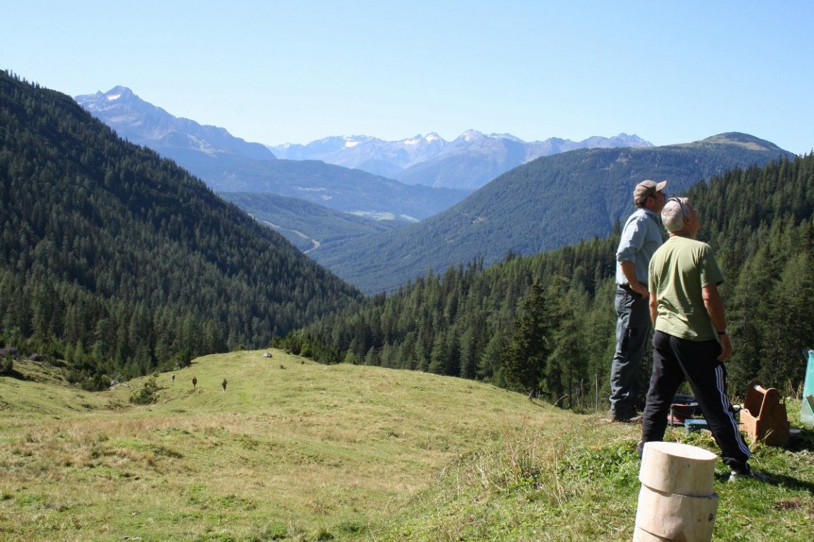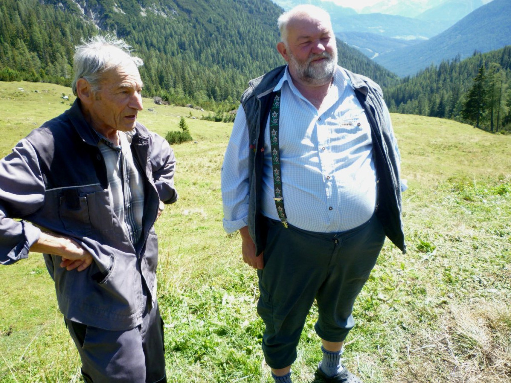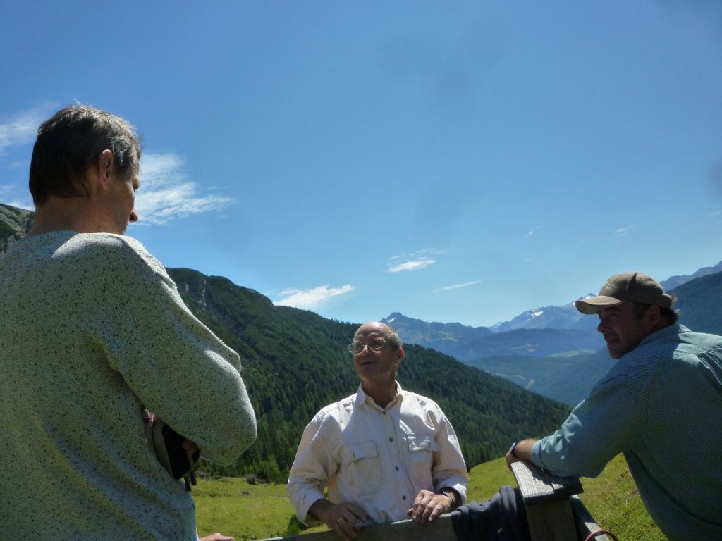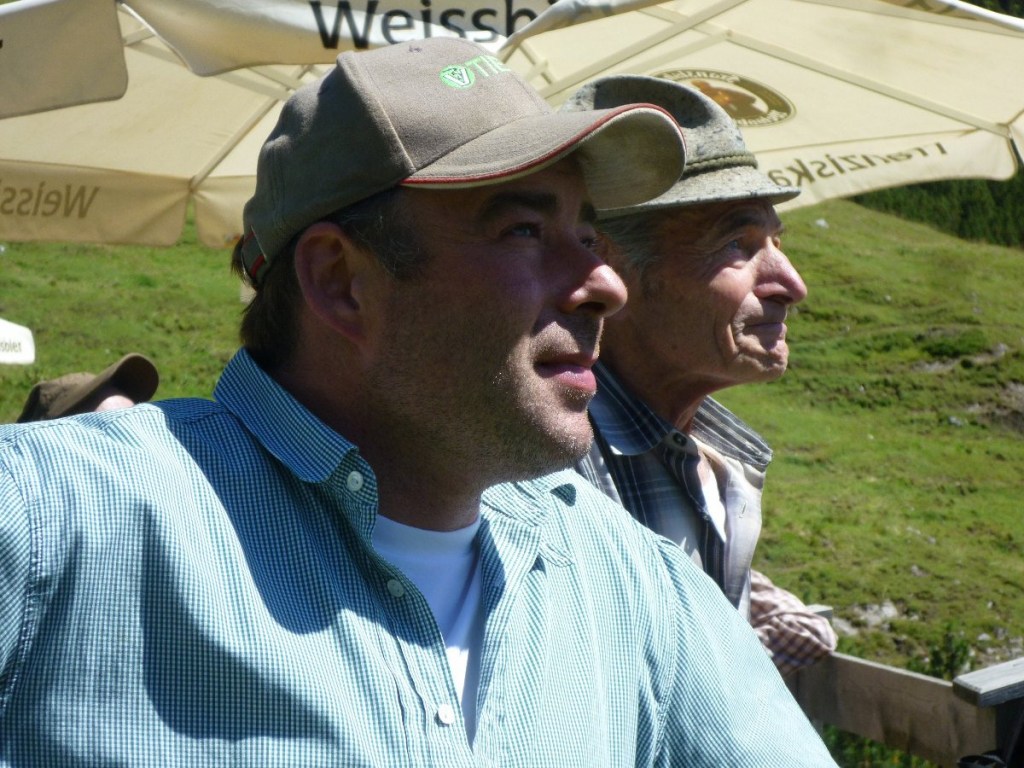 Gemeinsam mit dem neuen Almobmann Benedikt van Staa, seinem Vorgänger Hansjörg Wett und dem Almschreiber waren wir am Mittwoch, dem 3. August 2011 Gäste in der Fisser Holzschnitzer-Werkstatt von Siegfried Krismer.