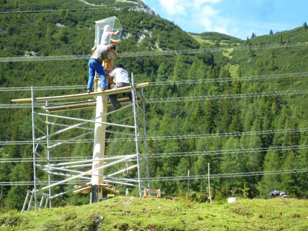 Aufstellen der Marienbergsäule auf der Marienbergalm. (Fotos: Knut Kuckel)