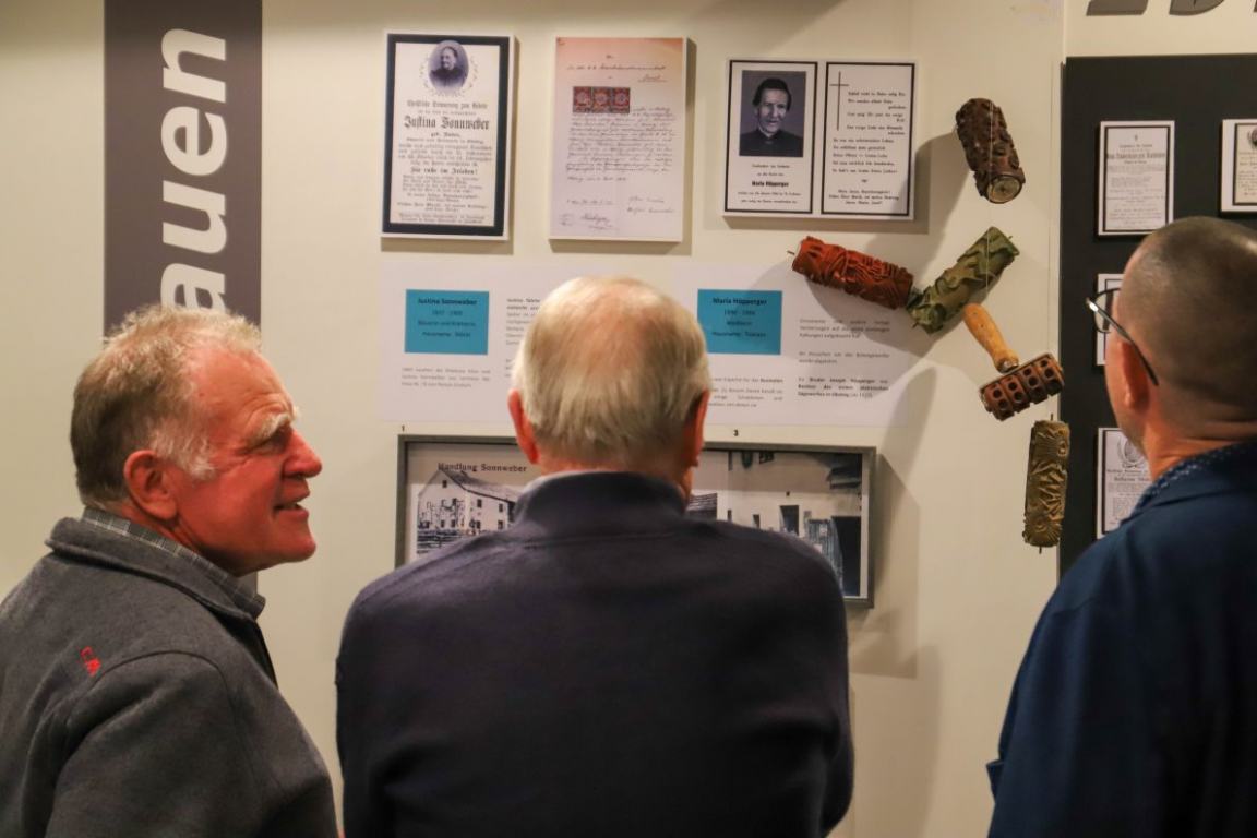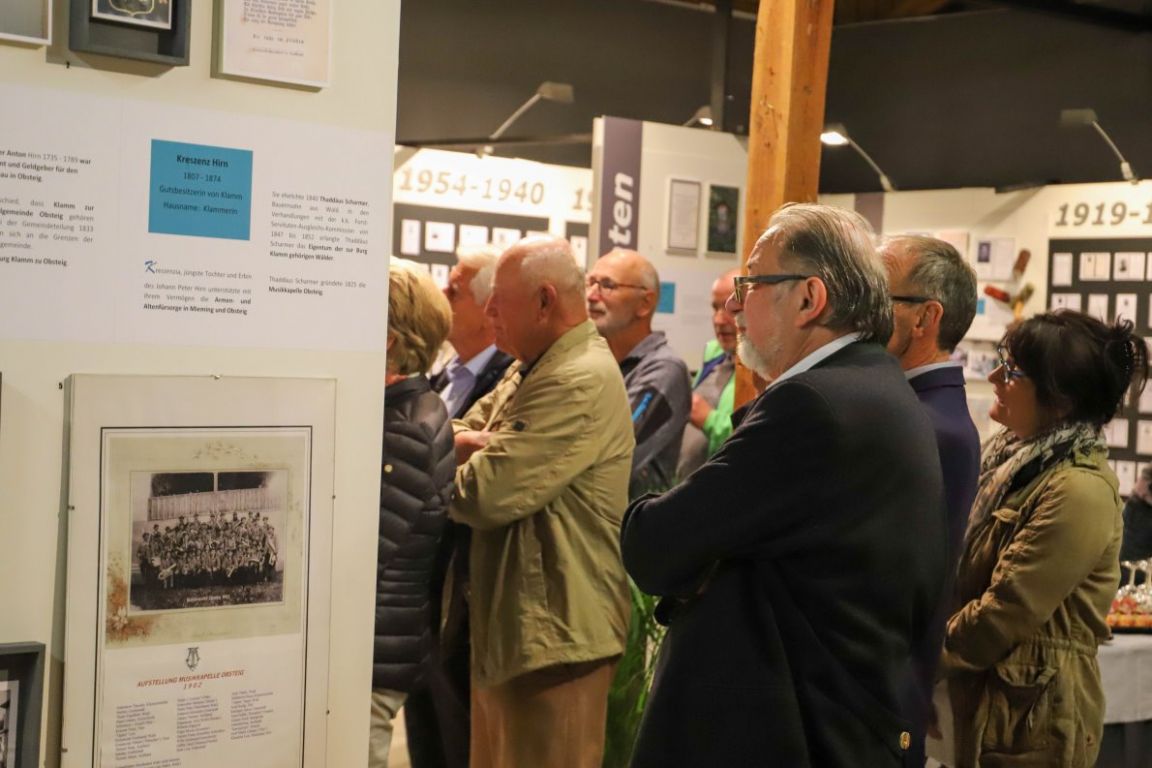 Bürgermeister Hermann Föger lobte zur Ausstellungseröffnung sein Chronik-Team. „Die haben vor ein paar Jahren die Arbeit unseres früheren Dorfchronisten Hubert Stecher wieder aufgenommen und sich seither in zeitgemäßer Weise mit der Geschichte unserer Gemeinde beschäftigt. Damit Jung und Alt erreicht.“