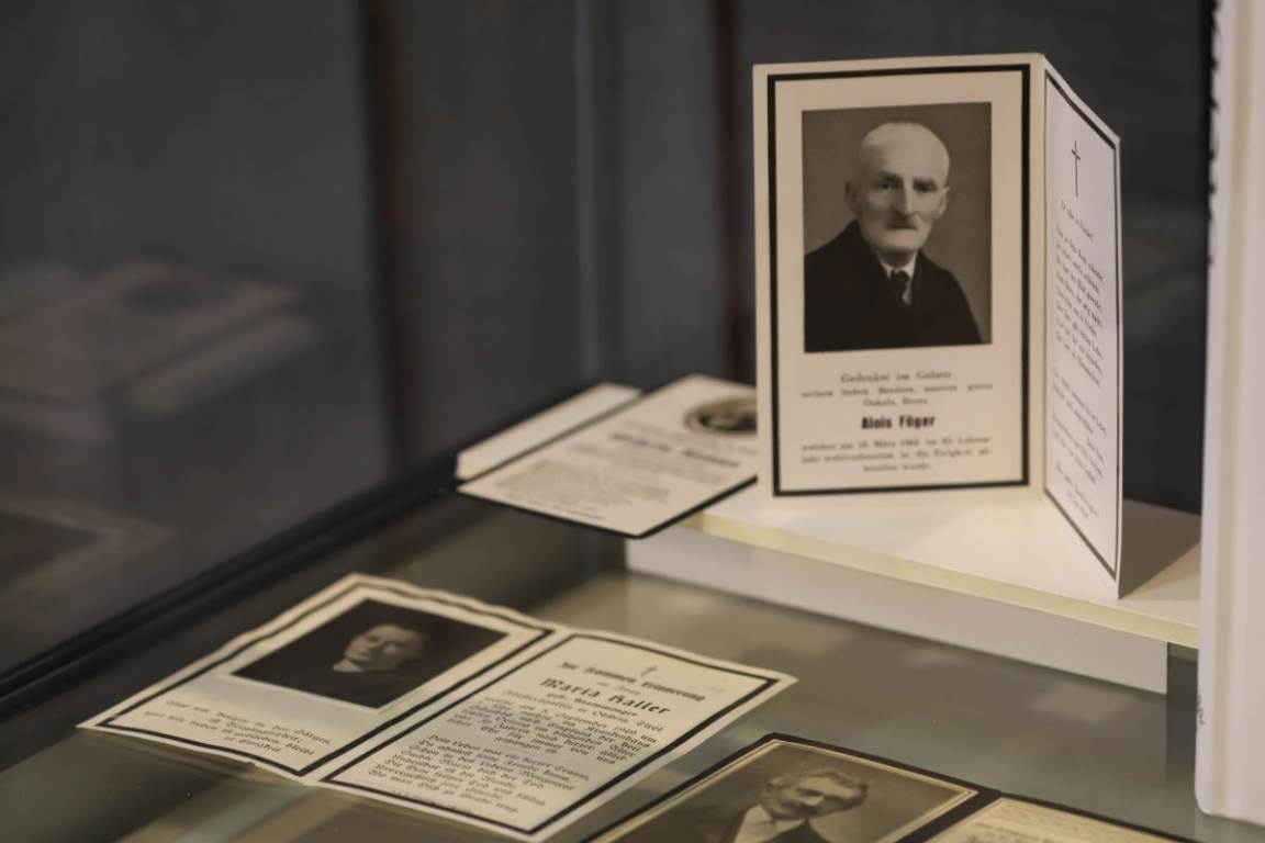 Die Vorbereitungen zur Ausstellung wurden vom ganzen Dorf unterstützt. Sabine Ortner: „Hilfreich beim Einstieg war das Totenbuch der Gemeinde Obsteig. Rund 500 „Obstoager Leit“ stehen drin. Sie prägten unsere Gemeinde.“ Die Überlassung der Sterbebilder, meist aus privatem Besitz, verdiene großen Respekt. „Das ist verständlicherweise eine sehr sensible Angelegenheit, das war uns immer bewusst.“
