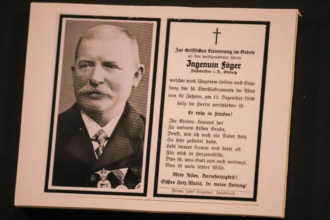 „Des Postmeisters Vereine, allen voran die Musikkapelle, der Kirchenchor und die Feuerwehr. Der Josef half bei der Kirchenrenovierung und bei der Beschaffung der Glocken. Sogar die St. Josefsglocke läutete im Hintergrund mit ihrem hellem Klang zur Grabrede des Pfarrers.“ Josef Föger brachte es auf stattliche 87 Jahre. Viele Obsteiger wurden damals über 90 Jahre alt. Nachzulesen ist auch das im Totenbuch der Gemeinde.