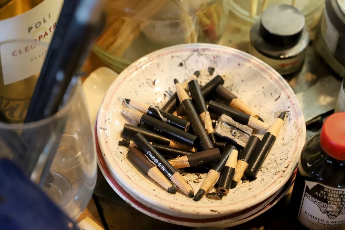Der Solnhofener Plattenkalk gilt noch immer als das beste Lithographie-Gestein. “Weil er glatt ist, ohne Maserungen oder Strukturen”, erklärt Günther Stecher. “Der Kalkstein ist auch gut zu polieren.”