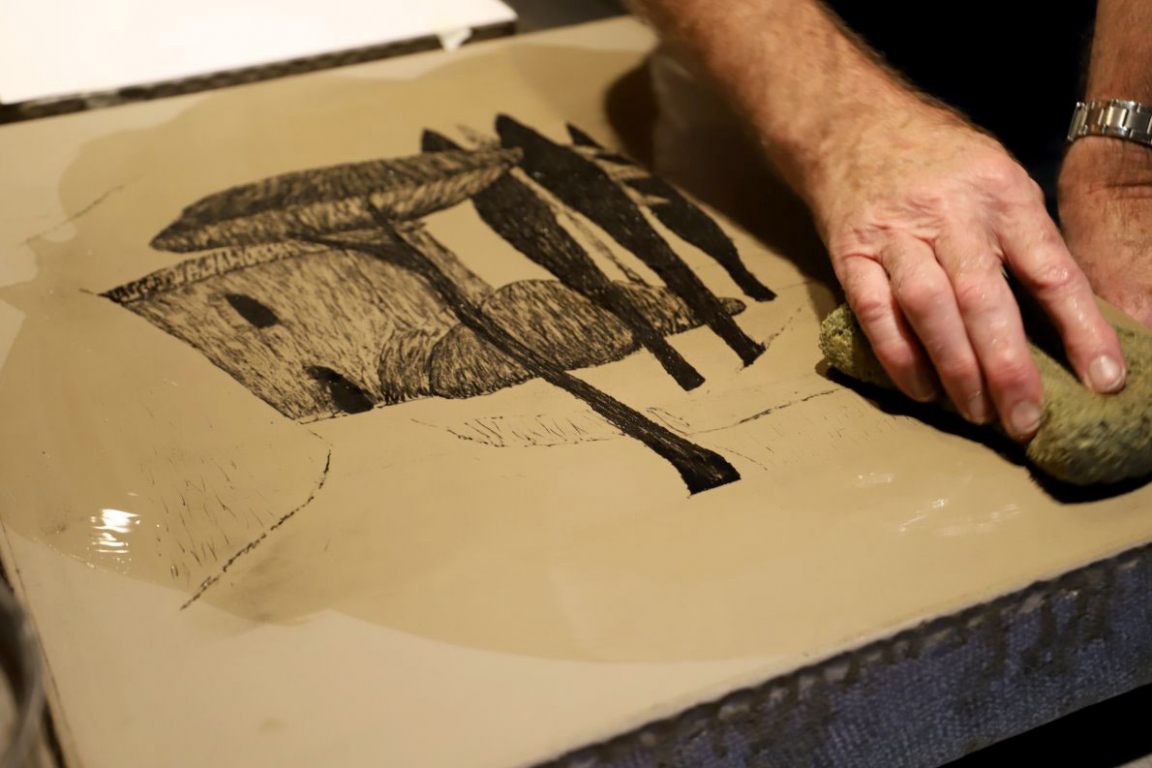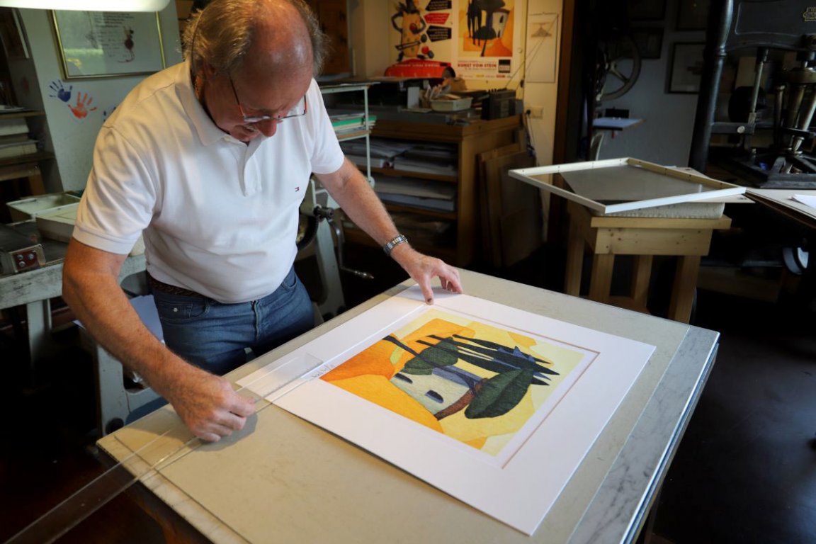 Nach dem Druck werden die Steinplatten abgeschliffen. Jede signierte und nummerierte Lithographie hat deshalb einen exklusiven Wert.