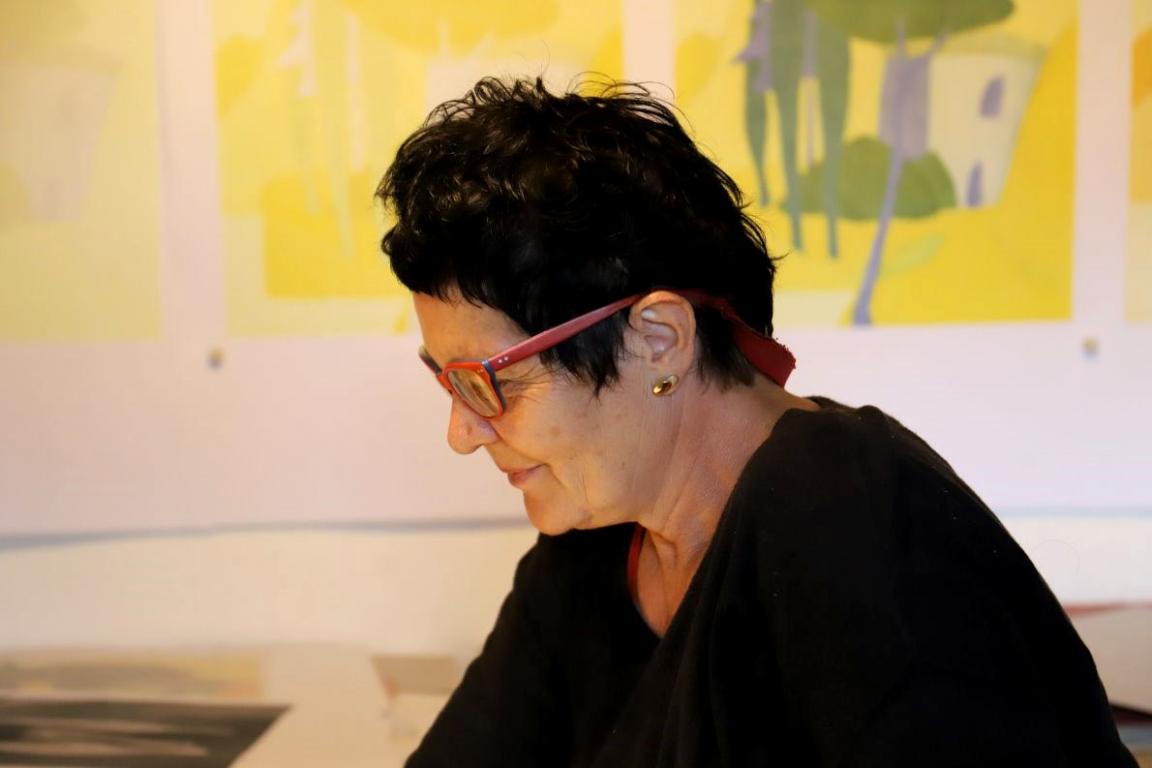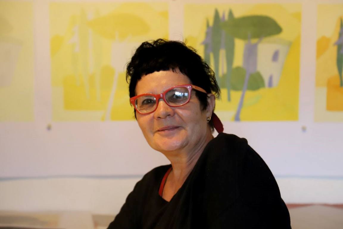 „Eine gelbe Gardaseelandschaft“, will Veronika Gerber unter ihr nächstes Bild schreiben. Während Sie ihre Gedanken ausspricht, wird sie für einen Moment sehr privat.